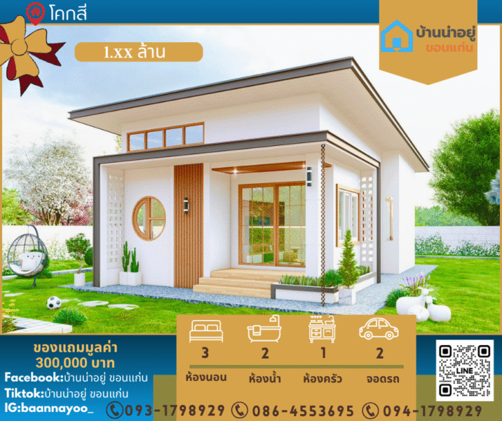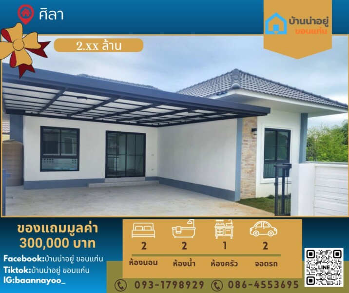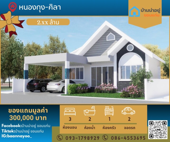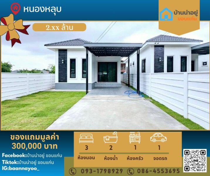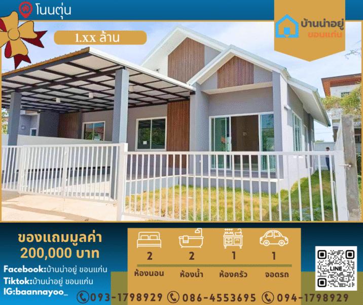 บ้านเดี่ยว 3 ห้องนอน 2 ห้องน้ำ บนที่ดิน 85.5 ตารางวา พิกัดบ้านโนนม่วง